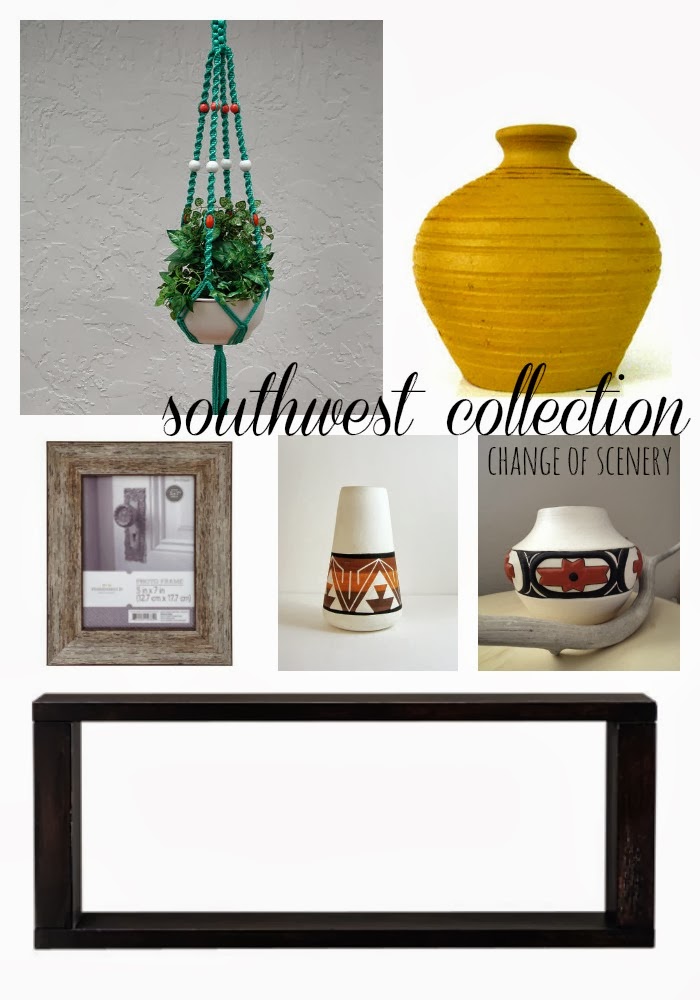 1. Experiment with found objects. On a recent thrift store hunt I found the cutest vintage soda bottle carton that I thought would make a great shelf in the living room. A quick clean up, a little polyurethane and some of my favorite collected objects and I was sold.